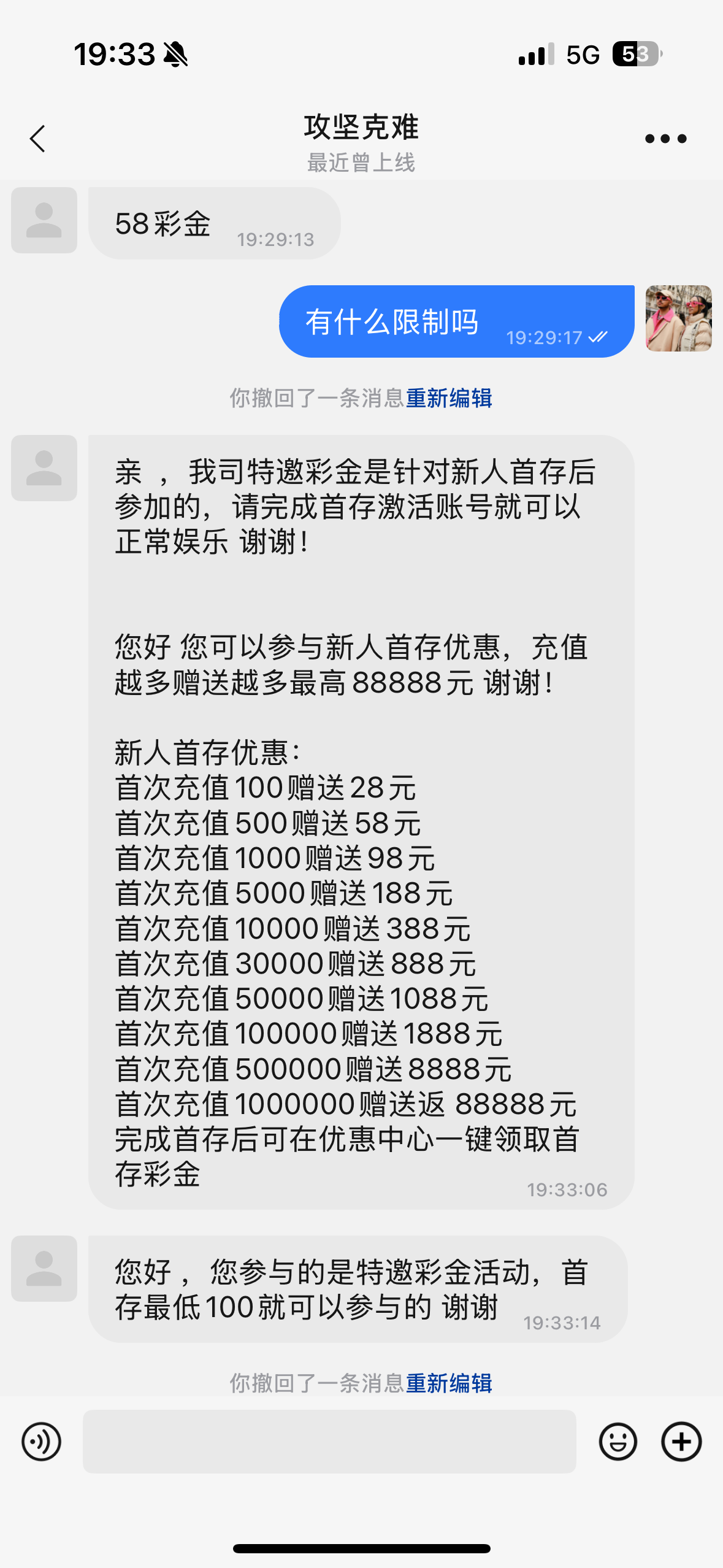 我也收到了,送了58,隔壁论坛有个出了1.5k,有一些又说黑,我也没充
