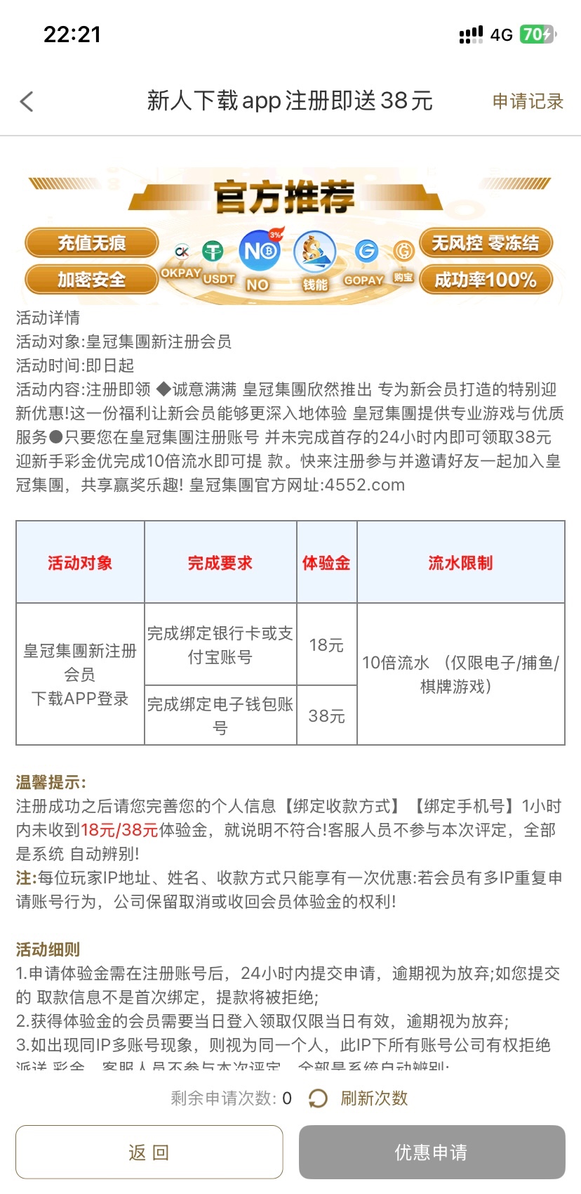先下载APP再注册,绑定好提款信息,提交申请过了几分钟就送了。
